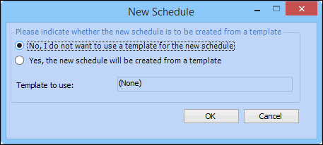 6. To create a schedule from scratch, select No I do not want to use a template for the new schedule, and then click OK. The New Schedule Properties dialog appears.