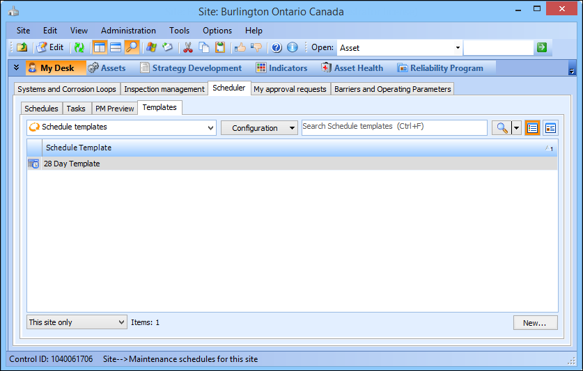 When you create schedules from templates, APM sets the starting date based on the information on the General tab, Details tab, in the schedule template properties. For example, if the schedule template has a starting day of Sunday, the starting date for the schedule will be the next Sunday that doesn’t yet have a schedule. If the starting date is the same as the current day of the week, APM sets today's date as the starting date. If necessary, you can change the starting date of the schedule.If a template has an Offset Start Date value, APM will also use this information to calculate the starting date of the schedule.Note: In order for the offset date to be used, the schedule set must be created from the parent schedule and not the schedules using the offset. For example, create the schedule set from the monthly template, not from each weekly template.Note: The My Desk view only displays the tabs described below, if you are set up as a scheduler on the Properties view, Roles tab, Scheduling tab of the employee record.To Create Schedules from a Template