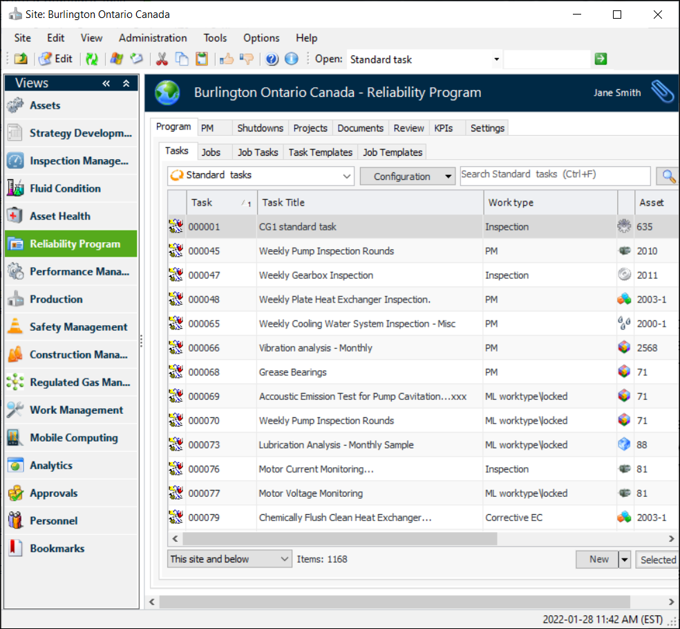 2. Select the Program tab and then the Tasks tab. This tab shows a list of all of the standard tasks available on the site.