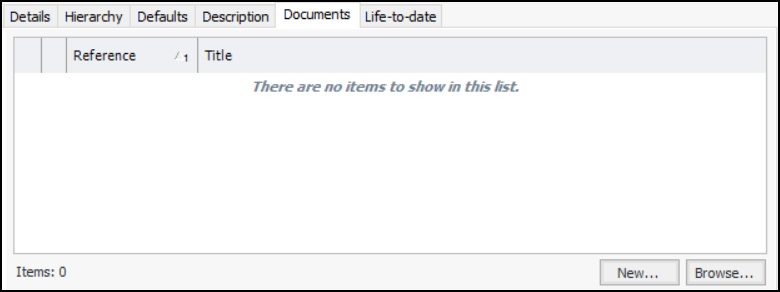 11. Click New to create a document, or click Browse to select an existing one. For more information, see Creating a Standard Document.
