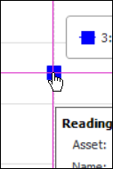 Cross hair settings can be enabled on any APM chart, except pie and donut charts. You can enable the cross hair on the x value line, y value line, or both, and set the dash style for x and y lines. In this example, the cross hair lines are pink:Note: You can also set cross hairs on a chart’s data series, on the Graph Data Series dialog. Using the Format style setting, you can add a format pattern to set the information displayed. See Defining Custom Data Series for a Chart.To Set Cross Hairs for a Chart
