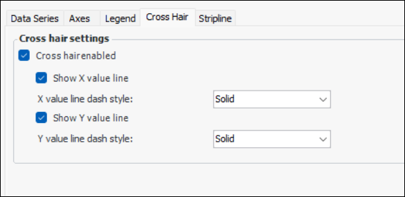 2. On the Appearance tab, View as area, ensure that Chart is selected. In the Chart tab, select the Cross Hair tab.