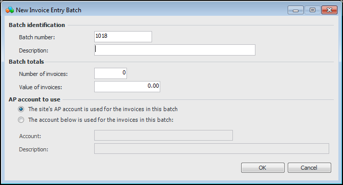 2. Click New. The New Invoice Entry Batch dialog appears.