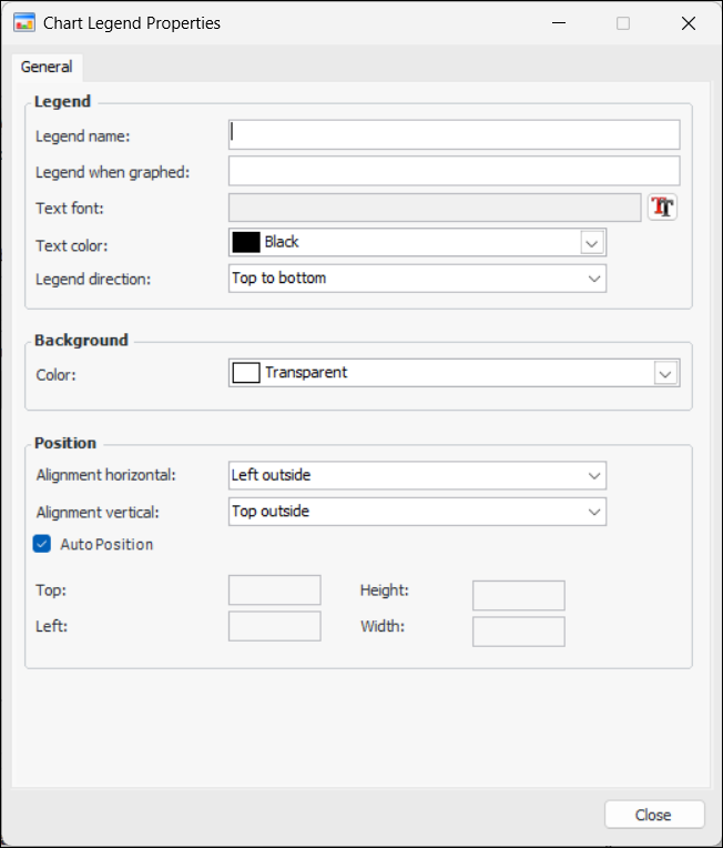 • Clear Auto Position and then enter your own pixel positions for the top, left, height, and width of the legend