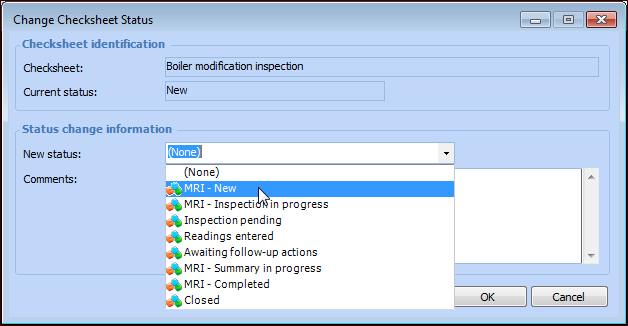 For information about updating and closing the MRI checksheet, see Completing a Modification and Repair Inspection Checksheet.To Create an MRI Checksheet