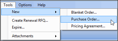 4. Click Yes. The system creates a new purchase order and opens the purchase order window.