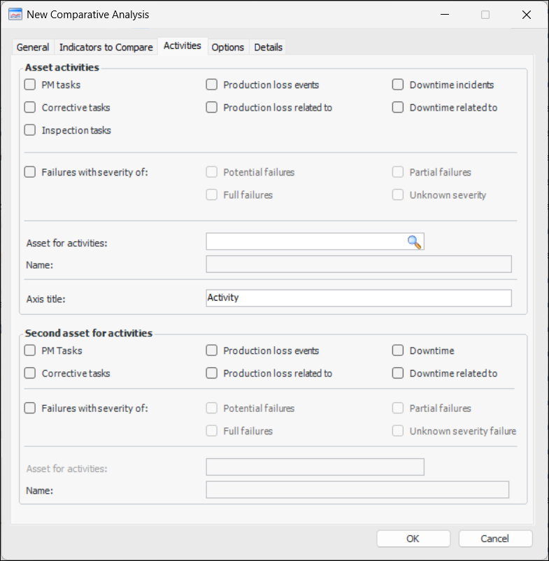 15. Select the Asset Activities tab to view tables of the asset’s activities. You can choose from these table configurations:
