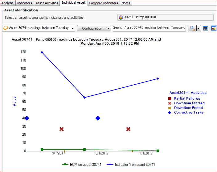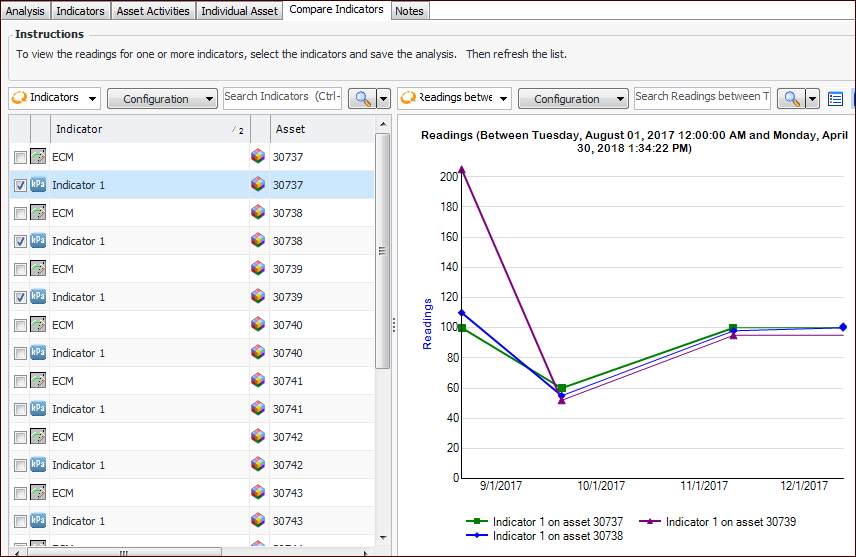 16. Select the Individual Asset tab if you wish to view the indicator comparison chart for one of the analysis assets. Select an asset. For example:
