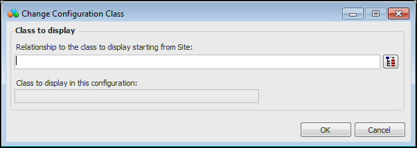 • To display objects from a different class in the new configuration, click Change. The Change Configuration Class dialog appears:Click OK to close the Change Configuration Class dialog. Then click OK in the New Configuration dialog.Note: To use join paths, you will need to understand how the object model works. For information, see Exploring the Object Model Through the User Interface.