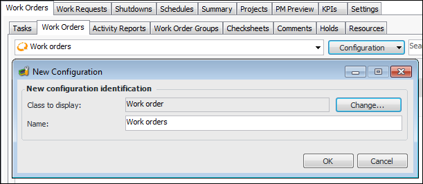 2. Click Configuration and then New. The New Configuration dialog appears, displaying the class displayed in the current table. For example:
