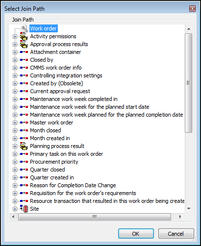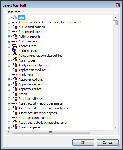 • Click OK. If you have already selected attributes from the main class, the following message appears: “You’ve made changes to the list of attributes. Would you like to maintain these changes?” Click Yes. The attributes in the join-path class now appear in the list.