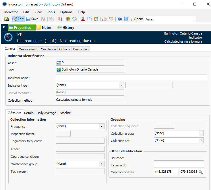 6. On the Collection tab, select a collection frequency from Frequency list. This information is used for filtering indicator lists.