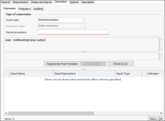 19. If the type of expression is stored procedure, the information on the Calculation tab changes: