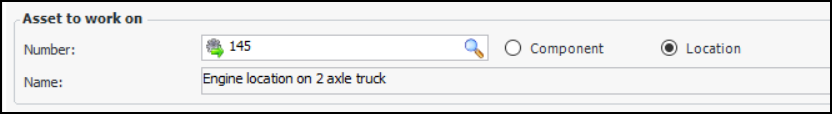 6. Select an asset and click OK. After you save the standard task, it is included in the asset’s reliability program.Note: If the selected asset is an installed component or a component location, Component and Location options appear in the dialog. You can switch to the component or location by clicking the appropriate option. For example: