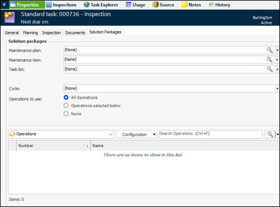A standard task’s work type determines if solution packages can be identified on its Properties view, Solution Packages tab. Requests for work generated from the checksheets associated with the standard task are then used to trigger the correct solution packages in the CMMS.Note: Support for solution packages on standard tasks is generally available in APM. You must first enable feature 119 to use the functionality in APM. In the Enterprise window, select the Features view and the Enabled Features tab. Click Browse, select “Solution package identification on standard task” and click OK. If APM is running as a smart client, click Refresh Enabled Features on the server. Then restart the client to use the functionality.To Create a Standard Task from Scratch