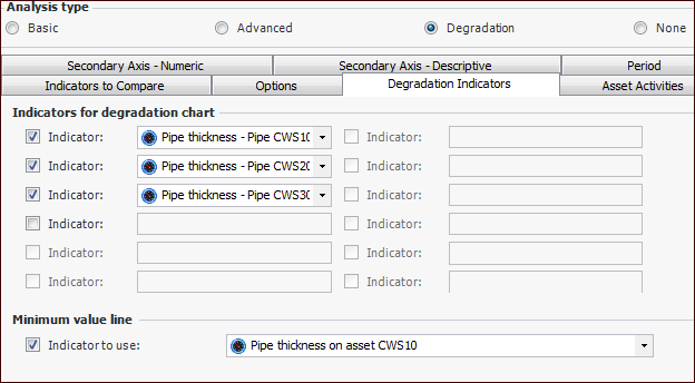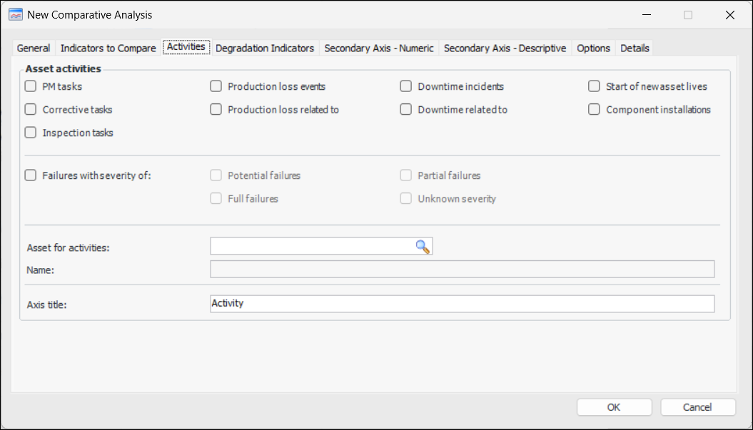 Note: In degradation analysis, activities are shown in the Analysis view, Asset Activities tab only.
