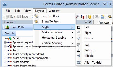 20. Find the relationship in the Toolbox panel, Relationships tab (for example, “Applicable Warranty”) and drag it onto the view. The type of control that appears on the view will depend on the type of relationship that you selected. For example, if it is a references one relationship, it will appear on the view as a label and a Browse button.Tip: To quickly arrange fields and/or labels in a window, you can use the Layout Options menu items. Select two or more items in the window and then select a layout option from the menu.Click the Browse button. The properties for the reference are detailed in the Properties panel. Expand the Data section.