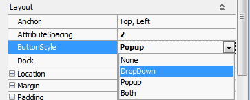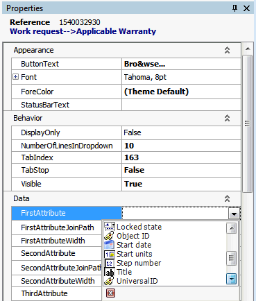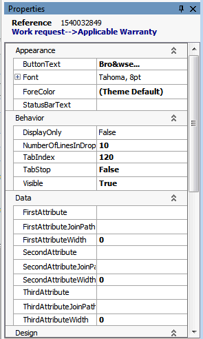 24. Most assets will not have a large number of warranties to choose from, so we will change the control from a Browse button to a dropdown list. In the Properties panel, Layout section, click the box beside Button Style and select DropDown.