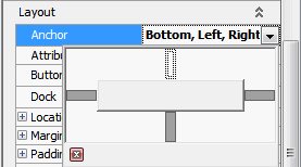 25. Because users can resize the Work Request Form, you need to make sure that the Applicable Warranty field moves appropriately within the form. In the Properties dialog, Layout section, click the box beside Anchor and click the dropdown arrow. A Selector appears.