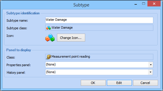 7. In the Subtype box, enter the name of your subtype and then click OK. For example, you might create a subtype called “Water damage”. The Class window for the subtype appears.Add Attributes to the Subtype