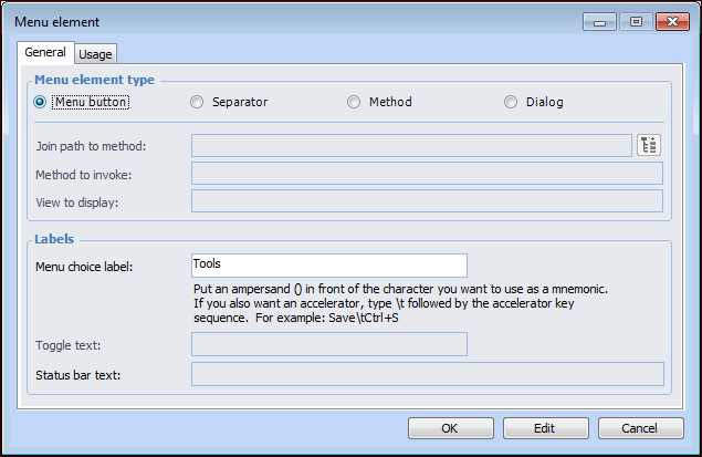 12. Click OK to save the menu element.Edit the Pop-up Menu