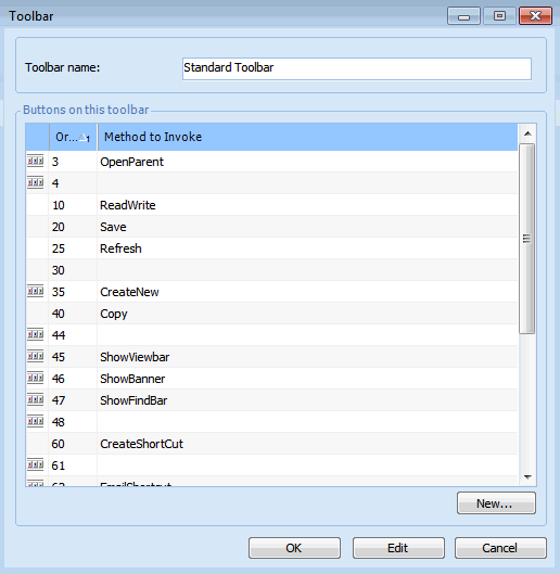 8. To refresh the toolbars, check in the class and then check it out again (select Class, and then Allow Editing twice).Edit the Toolbars