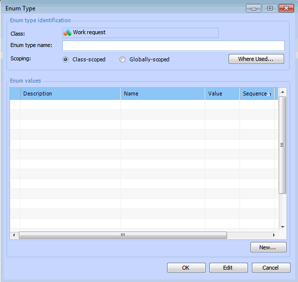 7. Select a Scoping option. Class-scoped enum types are only available to be used in the class within which they were created. Globally-scoped enum types may be used in any custom class.