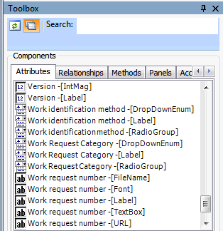 3. In the Toolbox, click the Attributes tab and the expander icon. Locate the enum attribute that has the format that you want. For example, select the RadioGroup format.