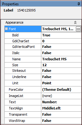 4. In the Layout panel, find the text field that you want to edit and click it. The Properties panel displays the properties of the field you selected.