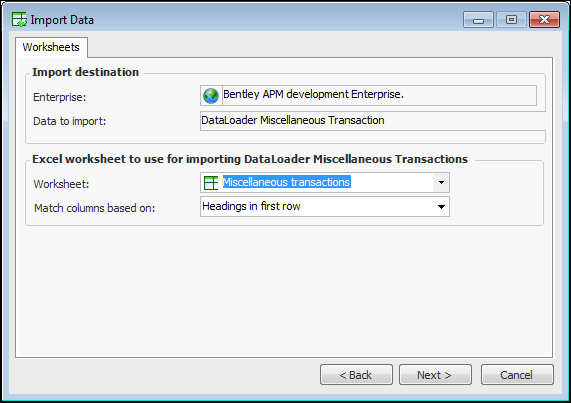 • Headings in the first row of the file – Each column heading in the first sheet of the workbook is matched with the property that has the same name. The match is not case-sensitive