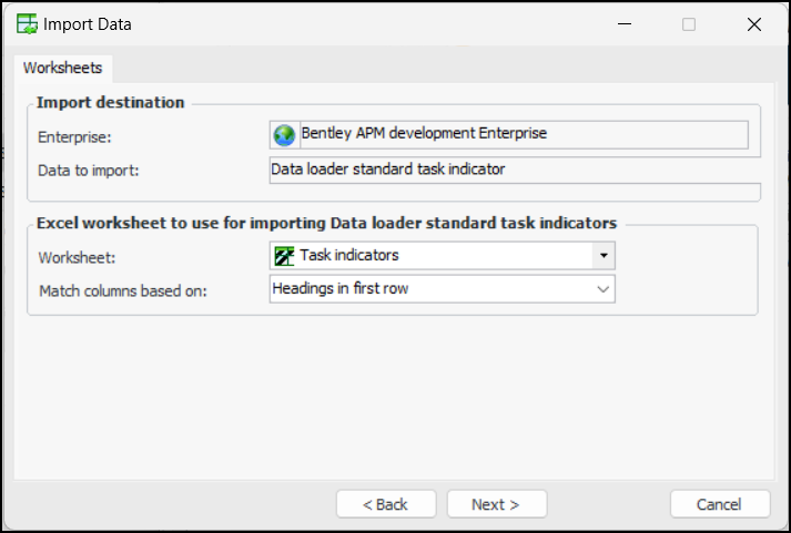 This topic explains how to import indicators and indicator templates from a Microsoft Excel spreadsheet.Importing Standard Task Indicators