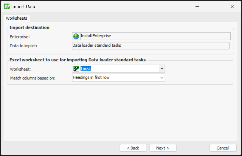 When you wish to populate an APM database with multiple standard tasks and templates, APM data loading provides an alternative to manual data entry: you can import standard tasks and templates from a Microsoft Excel® workbook. You can also update the properties of existing standard tasks and templates using the Import Data wizard.Processing Options