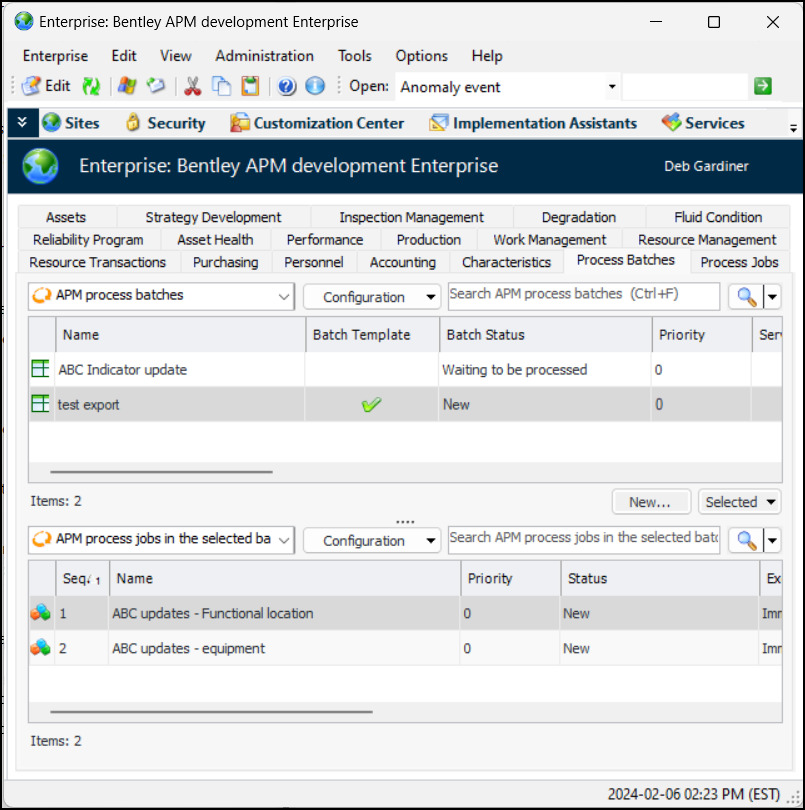 13. When you are finished, click OK to save the process batch. The batch appears in the list.