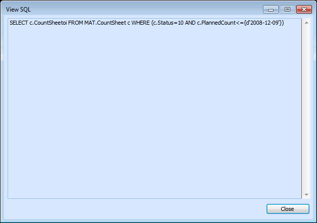 When a purging rule is executed, the selection criteria is translated into an SQL select statement. You can preview the SQL to be produced by clicking View SQL. You cannot alter the generated SQL.