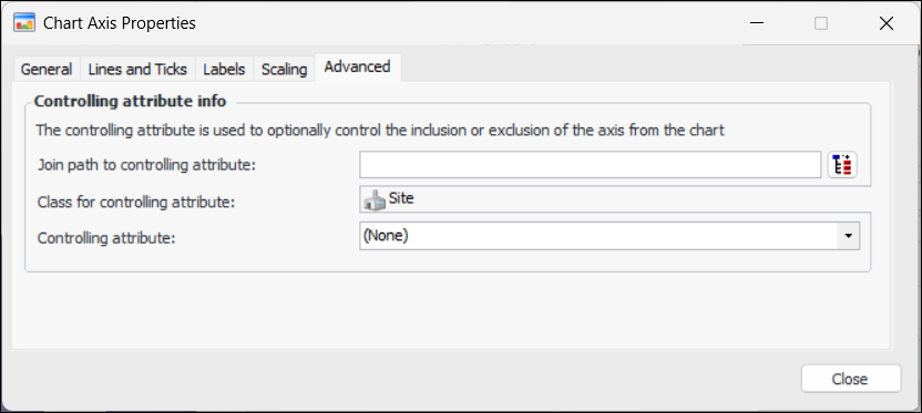 2. Select the Advanced tab from the Chart Axis Properties dialog. For example: