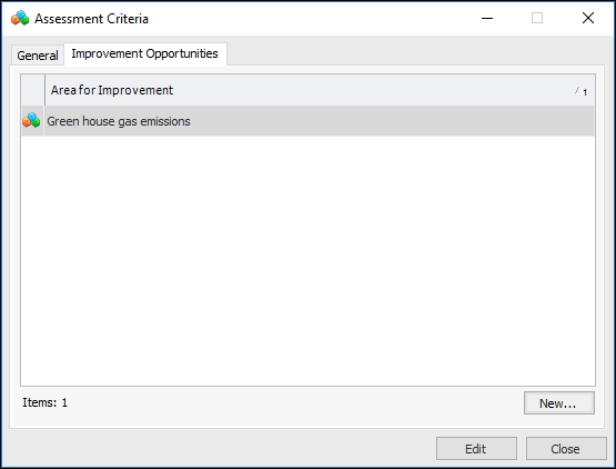 9. Click Close to close the Assessment Criteria dialog.