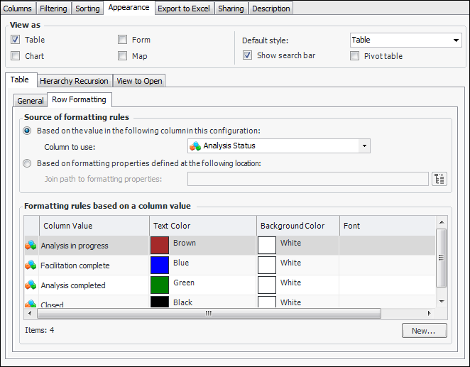 Defining View as Table Appearance Properties