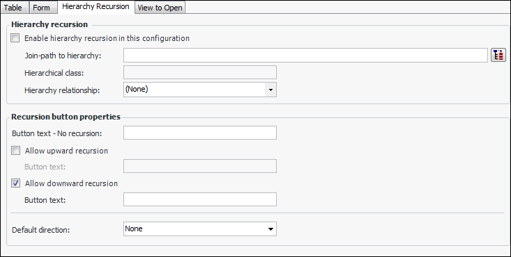 19. Select the Hierarchy Recursion tab if you wish to edit or add recursion settings. Here is an example of the tab for a new configuration:
