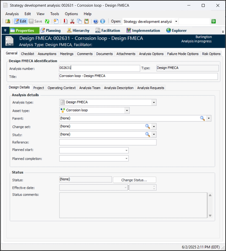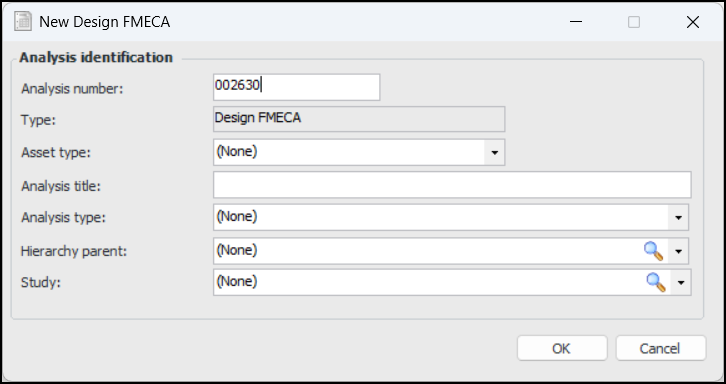 5. The analysis title is automatically set to “Asset type - Design FMECA”. You can change it as needed.