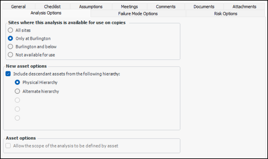 29. Select the Failure Mode Options and Risk Options tabs to change the default settings for the analysis. For more information, see: