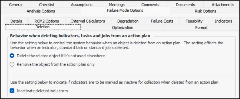 1. Select the Indicators tab.To Set Deletion Behavior Options