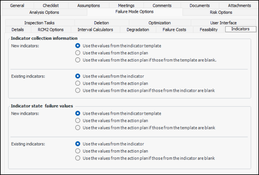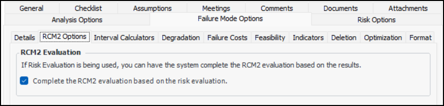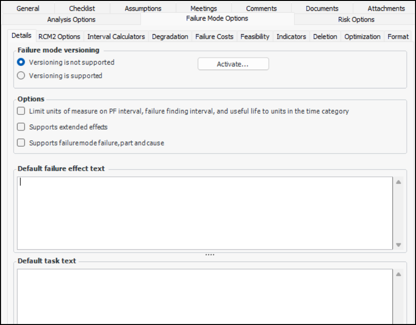 6. In the Default task text box, you can enter text that will automatically appear in the Task boxes for new failure modes.To Set RCM2 Options