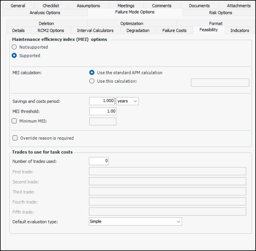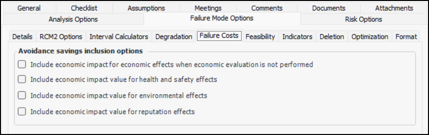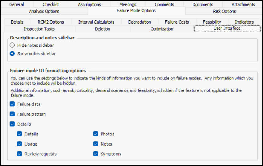 • Hide or show the Failure mode note sidebar in Maintenance Action Plan windowsTo Set Failure Mode Details