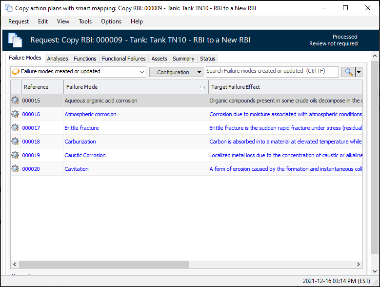 You can revisit a failure mode copy request after the Failure Mode Copy wizard has been closed. The Copy Requests tab is available for the site and individual analyses. The actions you can perform on a copy request include:
