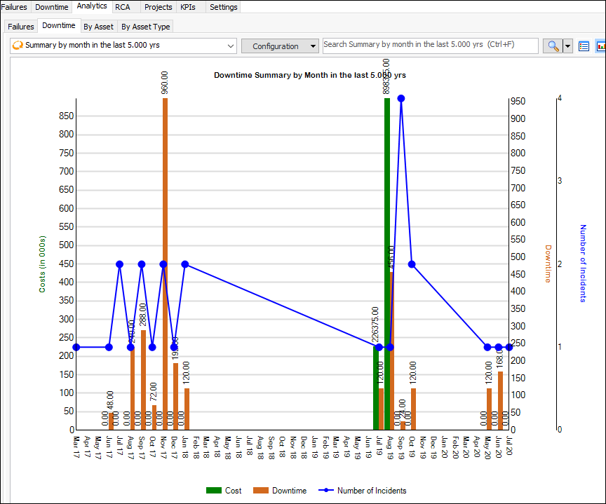 5. Select the By Asset Type tab and select an asset type in the tree to view failure avoidance savings and downtime incidents for assets of this type.
