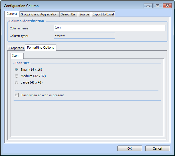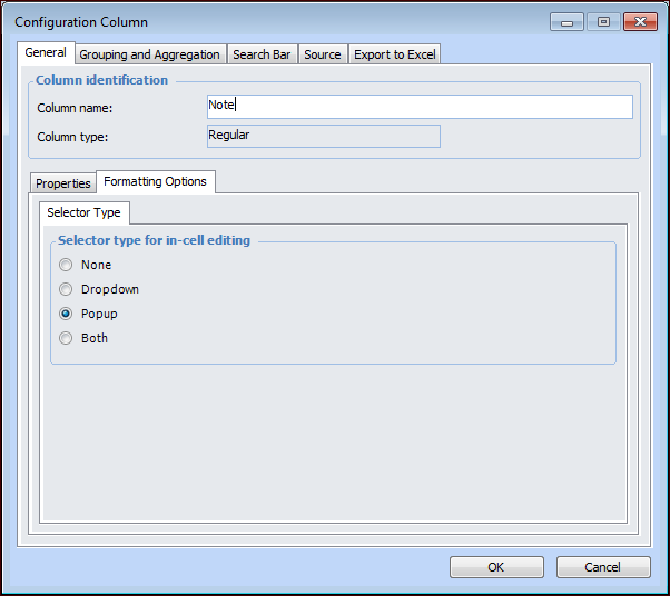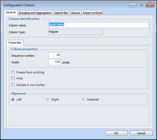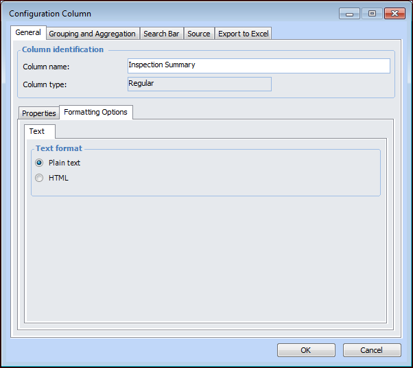 14. When you have finished editing column properties, click OK to save the changes and close the Configuration Column dialog.