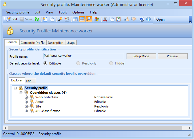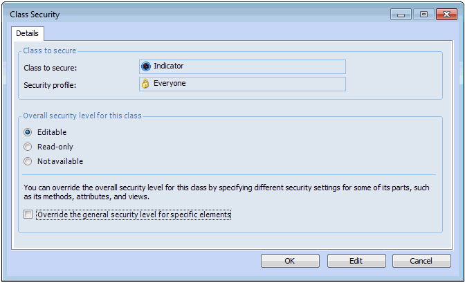 Editable (Full access): This level allows a user to perform any task on objects of this class, including viewing data, entering new data, and editing existing data. All actions are enabled, and all views and pages are visible. For example, a user whose profile has the purchase order class enabled will be able to create, edit and view purchase orders.