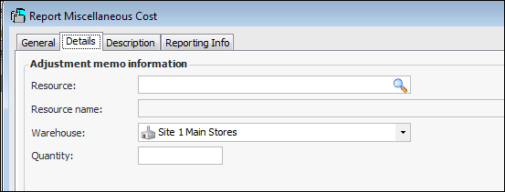 2. Click New. The Report Miscellaneous Cost dialog appears.