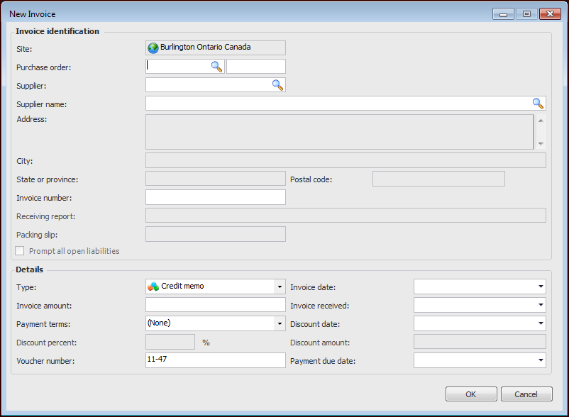 A new credit memo can be created as part of an invoice batch or on its own. This topic explains how to create a new credit memo that is not part of a batch. To enter invoice batches, see Creating an Invoice Entry Batch.Note: If you are creating a credit memo for material that has been returned, you must first record the return with a return receipt. For more information, see Returning Materials to a Supplier.To Create a New Credit Memo