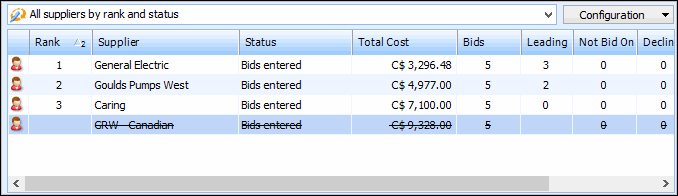 3. Right-click the supplier that you want to exclude and select Exclude From Ranking. The supplier is crossed out, and their ranking information is removed from the table.